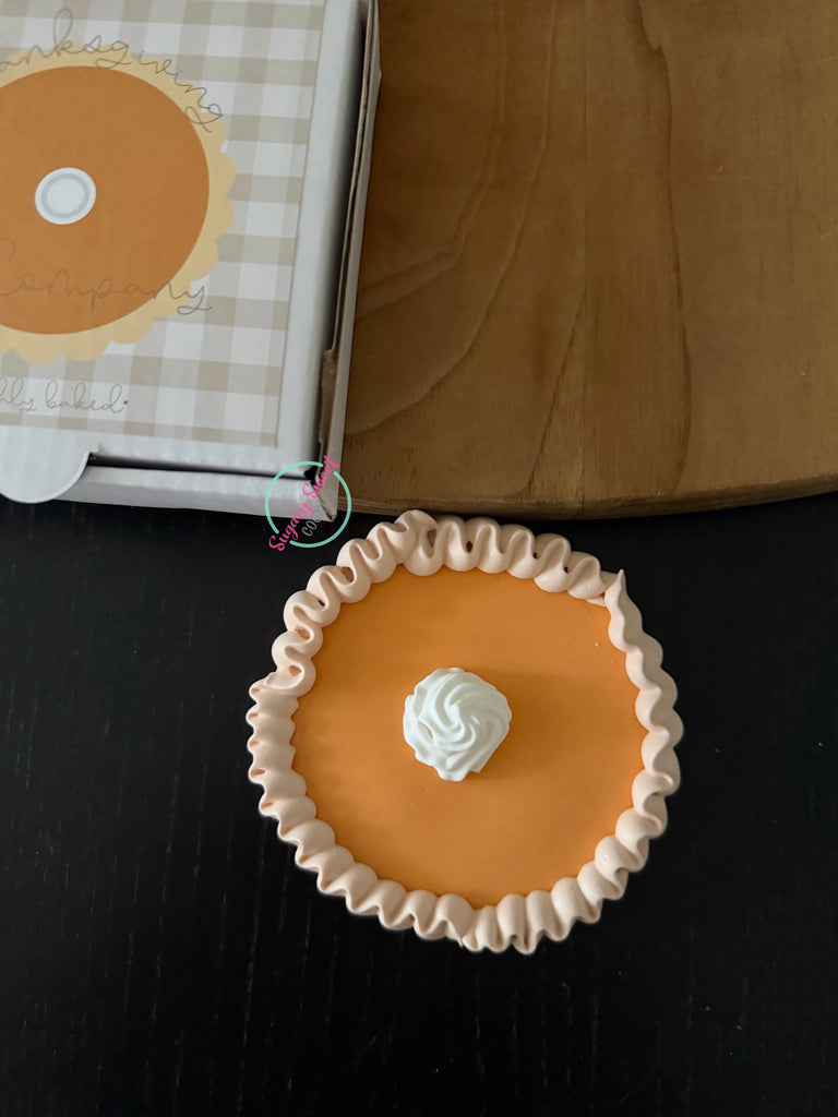 Indulge in our one-of-a-kind Pie box for the little ones. Feast your eyes on our adorable pumpkin pie cookie, nestled in a charming box, perfect for snacking on the go! Enjoy a delightful treat with this quirky box.